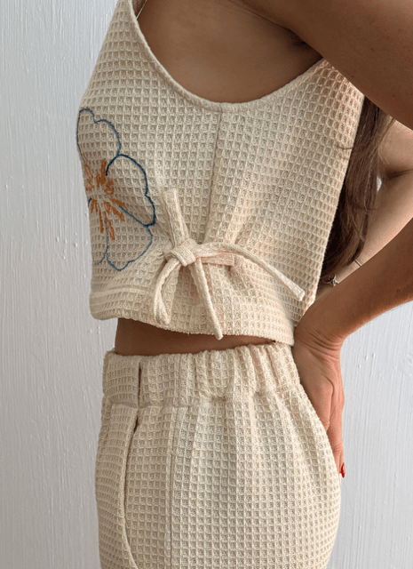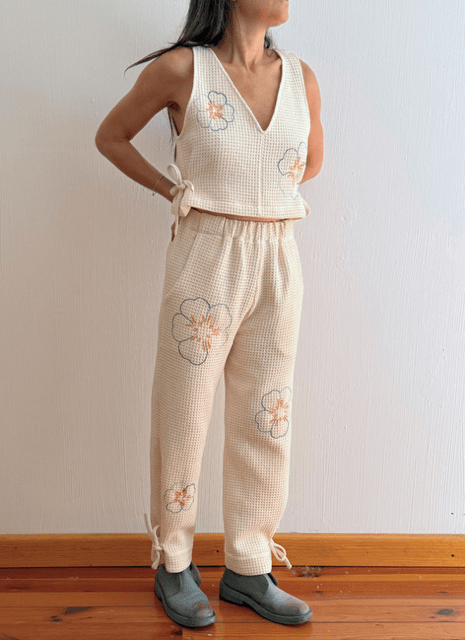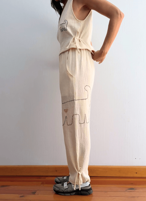 EMPEZANDO CON UNA, (STARTING WITH ONE), THE NAME OF THE COLLECTION, REFERS TO HOW IT ALL STARTED. HIRING JUST ONE WOMAN THREE YEARS AGO, NOW WE ARE A DREAM TEAM OF SEVEN. ALSO HOW THIS FIRST COLLECTION EVOLVED FROM JUST ONE GARMENT, THE DIEGUITA JUMPSUIT, TO THE FULL COLLECTION. IT REPRESENTS BEGINNINGS AND THE POWER OF JUST ONE ACT TO GENERATE CHANGE.